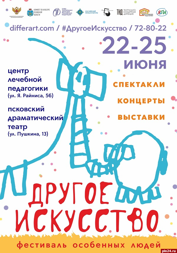 Международный фестиваль особенных людей «Другое искусство» пройдет в Пскове с 22 по 25 июня. Об этом Псковской Ленте Новостей сообщили в пресс-службе Псковского академического театра драмы имени А. С. Пушкина.