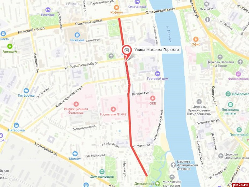 Теперь работы перекинулись за Рижский проспект, улица Максима Горького раскопана в сторону Коммунальной.