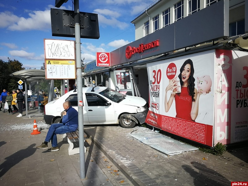 Люди на автобусной остановке, где расположена кредитная организация, не пострадали. Автомобиль получил технические повреждения.