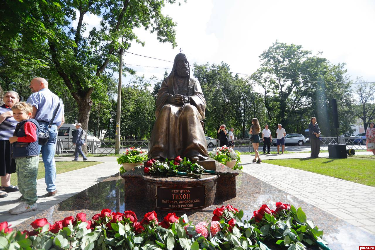Памятник святителю Тихону, Патриарху Московскому и всея Руси, открыли у стен Псковской духовной семинарии на улице Советской в Пскове 5 августа.