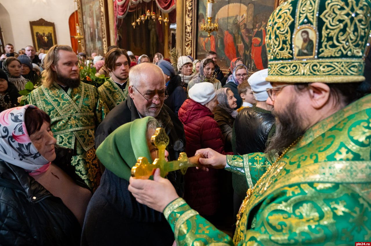 13 апреля, в празднование входа Господня во Иерусалим, митрополит Псковский и Порховский Матфей совершил Божественную Литургию в Свято-Троицком кафедральном соборе города Пскова, сообщили Псковской Ленте Новостей в Псковской епархии.