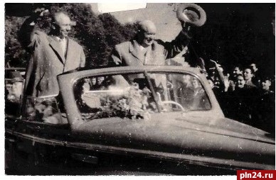 Ну, раз уж в Пушкинских Горах Сартр и его жена побывали, то и в Псков по пути вполне могли заехать, решил я и отправился в гости к Михаилу Афанасьевичу. Старейший псковский фотограф встретил меня радушно и часа два рассказывал о своем творческом пути, о том, что за пять десятилетий запечатлел на фотопленку весь Псков и окрестности вдоль и поперек. Только вот никому его архив не нужен. Показал и фотографию, которую, будучи студентом политехникума связи, сделал в Киеве в 1958 году: первый секретарь ЦК КПСС Никита Хрущев и первый секретарь ЦК КП УССР Николай Подгорный двигаются по улицам украинской столицы в кабриолете.