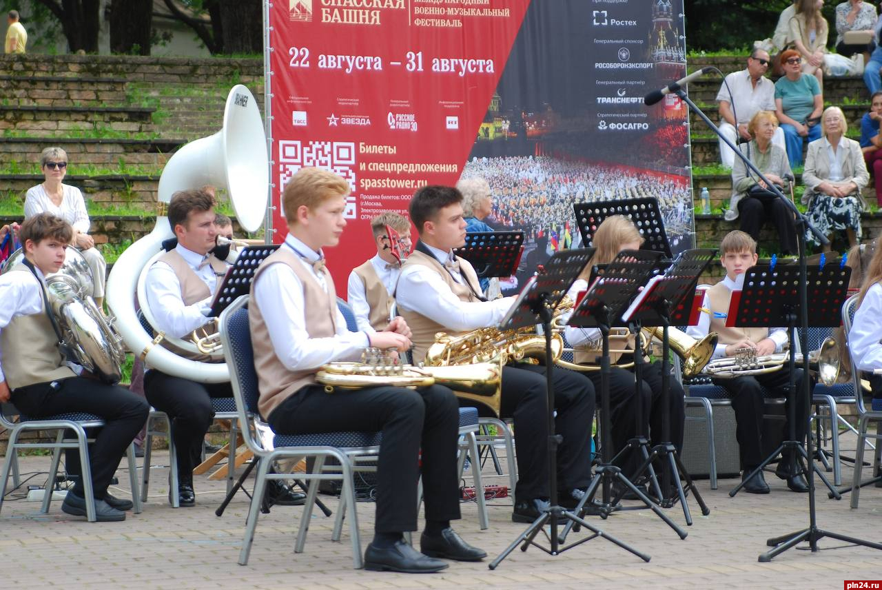 В воскресенье, 10 августа, сразу два детских оркестра исполнили песни о войне и Победе для слушателей программы «Военные оркестры в парках», которая в этом году дебютировала в Пскове. На сцену вышли Детский духовой оркестр имени Александра Роора и Детский духовой оркестр музыкальной школы № 5.