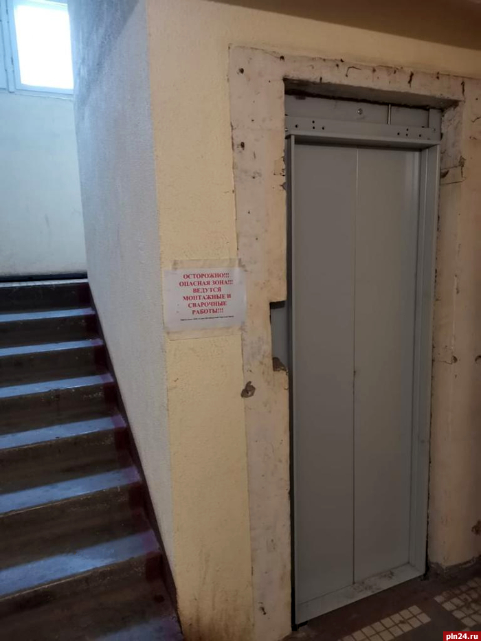 В домах по адресам: Псков, улица Алёхина, 24, улица Рокоссовского, 2, Рижский проспект, 22 работы выполнены на 40% - произведен демонтаж старого лифтового оборудования, установлены новые лифтовые кабины, новые двери и окна в машинных помещениях.