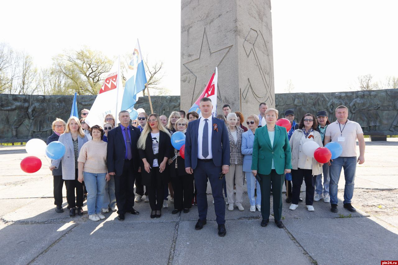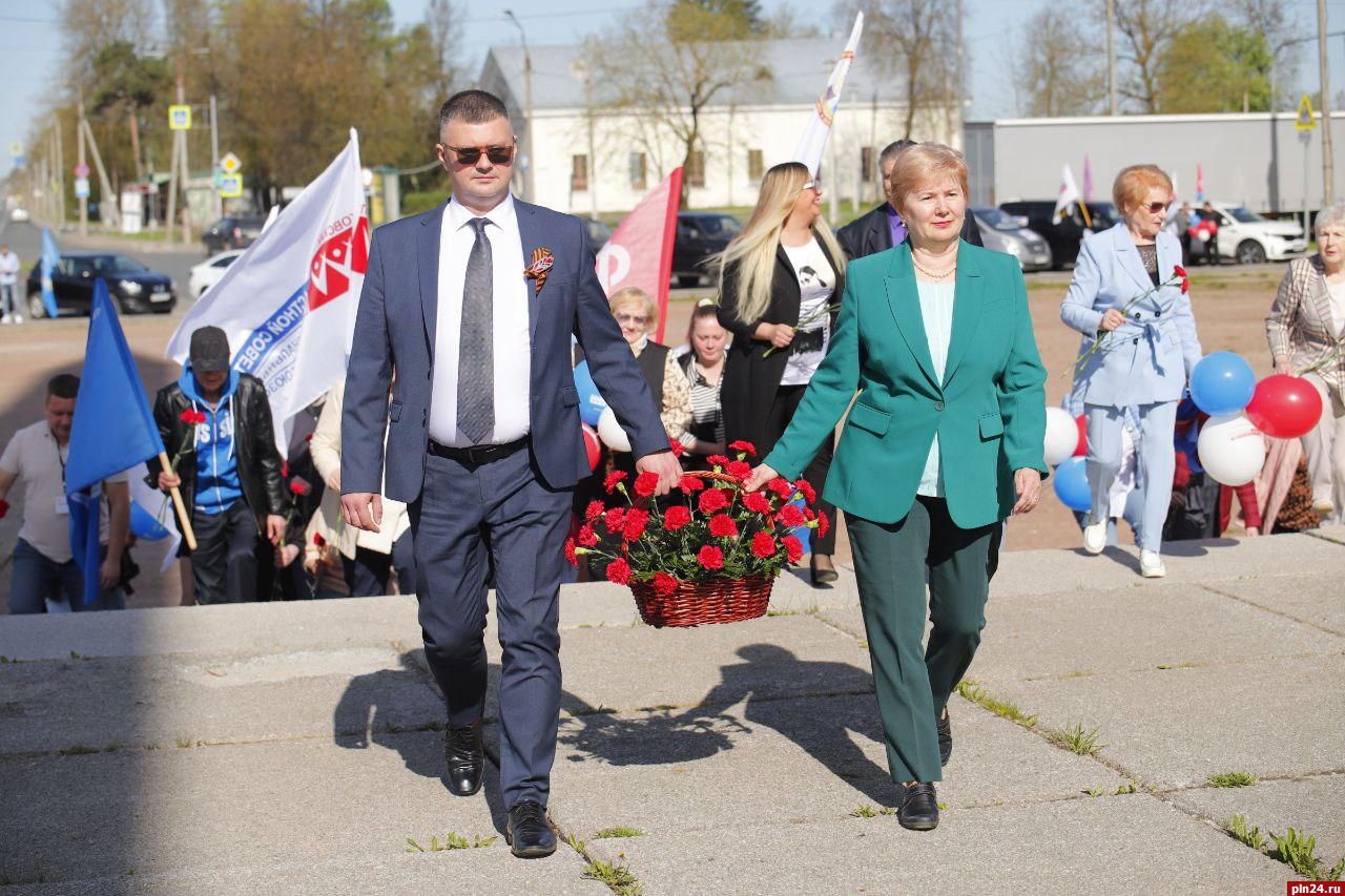 Стартовав от памятника княгине Ольге, колонна профсоюзов проследовала к памятнику в честь 50-летия Красной армии в Крестах, где состоялось возложение цветов.