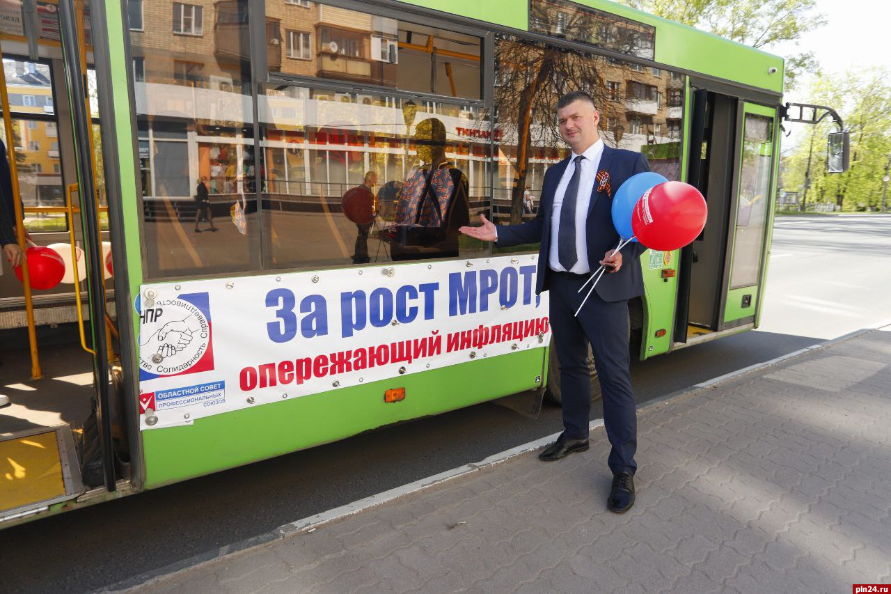 Помимо этого, уже в третий раз на 1 мая в Пскове запустили профсоюзный автобус, который курсирует по маршруту №17 с 10.27 до 14.57. В автобусе работают сотрудники облсовпрофа, которые поздравляют горожан с праздником, раздают им шары и буклеты о профсоюзных здравницах Псковской области, а также информируют о преимуществах профсоюзного членства. При этом проезд в профсоюзном автобусе совершенно бесплатный.