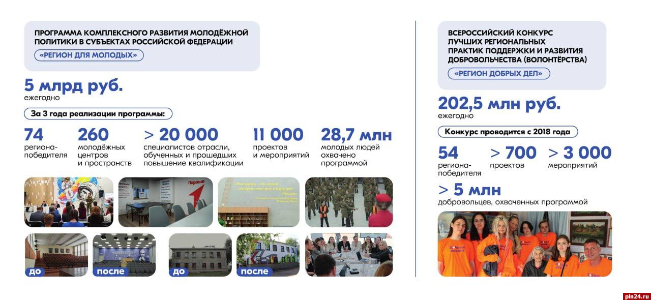 Псковская область победила в конкурсе Росмолодёжи «Регион для молодых» и получит 106 млн рублей на создание Молодёжного центра в Великих Луках, сообщается в Telegram-канале губернатора Псковской области Михаила Ведерникова.