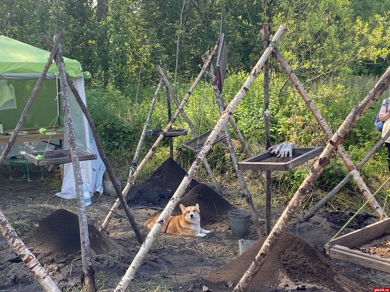 На площадке также разместили арт-объекты, копирующие находки, обнаруженные при раскопках. Подробности — в фоторепортаже Псковской Ленты Новостей.