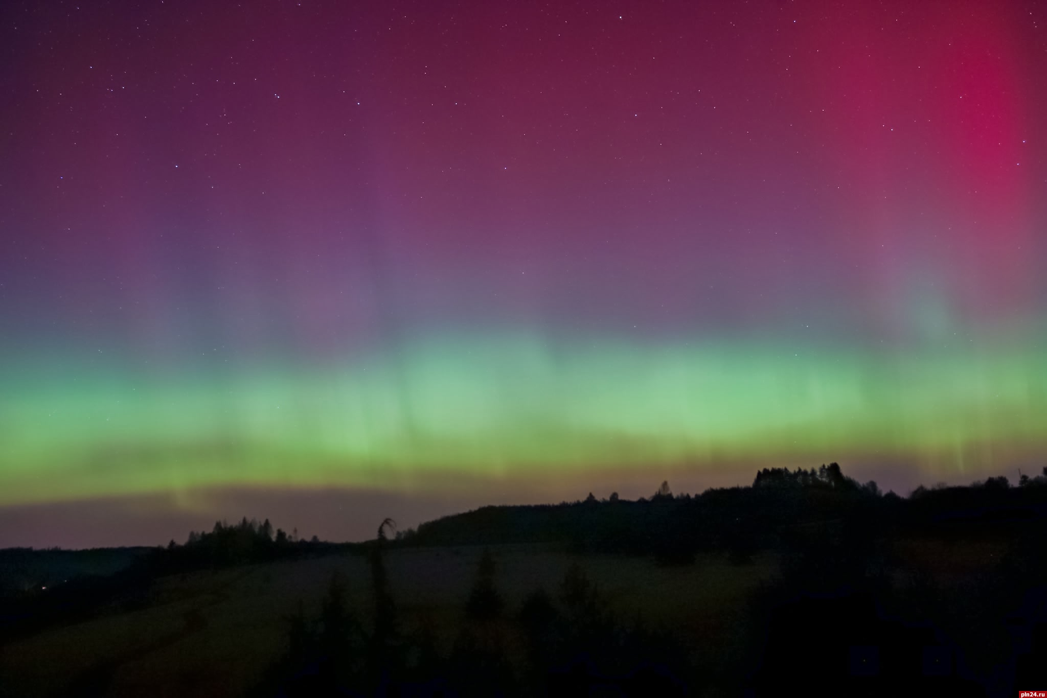 В частности, снимки сияния сделали в районах Соколиха и Силово-Медведово в Пскове.