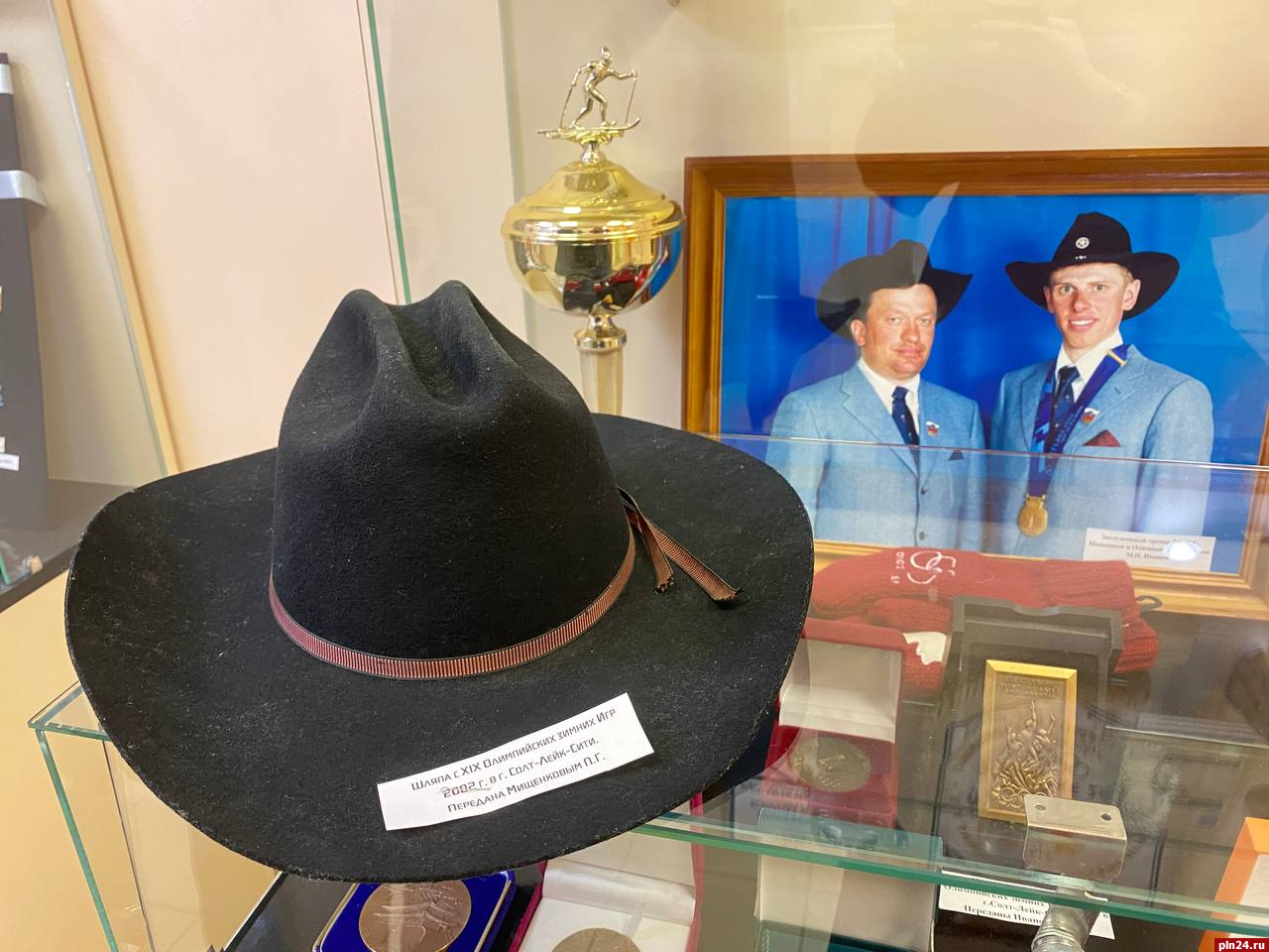Представители Псковского края в разные года прославились во многих видах спорта. На слуху имя олимпийского чемпиона Михаила Иванова - уроженца города Острова, выпускника Великолукской академии физической культуры. В музее размещено фото, на котором он запечатлен со своим первым тренером Павлом Мищенковым после победы на XIX Олимпийских зимних играх в Солт-Лейк-Сити (США) в 2002 году. Шляпа с этого снимка сейчас составляют экспозицию музея наряду с медалями и кубками Михаила Иванова, полученными на различных соревнованиях.