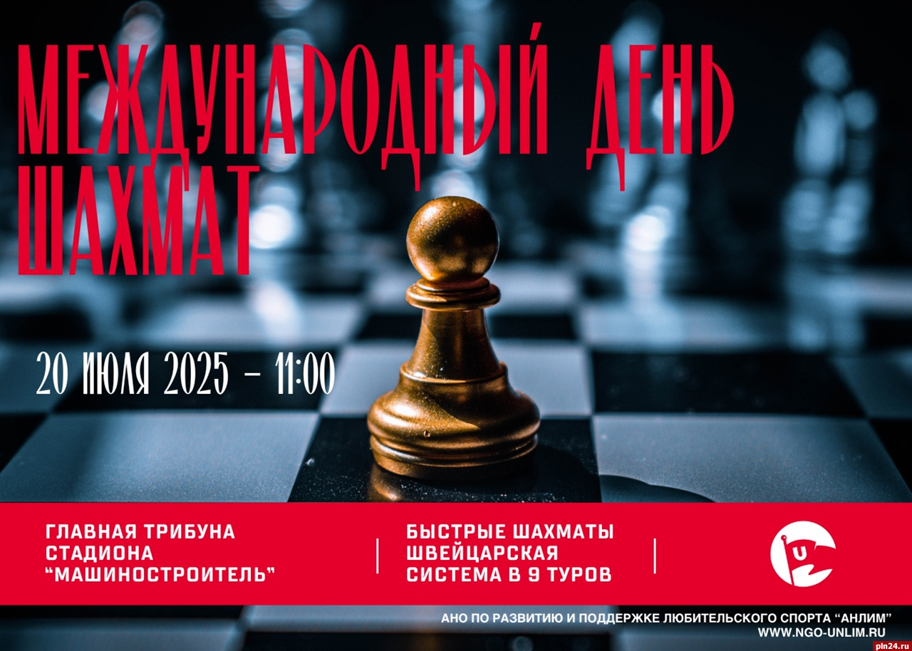 Турнир по быстрым шахматам состоится в честь Международного дня шахмат на стадионе «Машиностроитель» в Пскове 20 июля. Об этом шахматный клуб «Анлим» сообщил в своем сообществе в социальной сети «ВКонтакте».