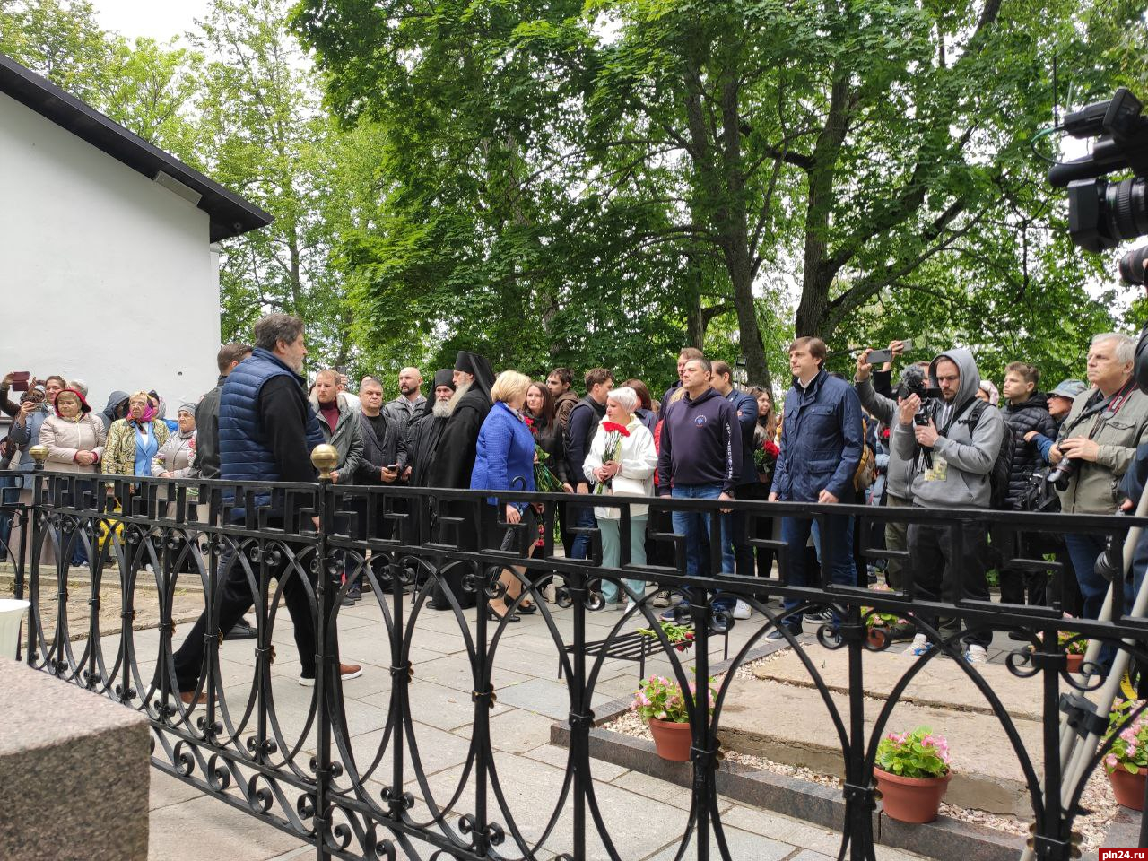 Памятная служба состоялась в рамках Дней Пушкинской поэзии и русской культуры. Литию отслужил митрополит Псковский и Порховский Тихон.