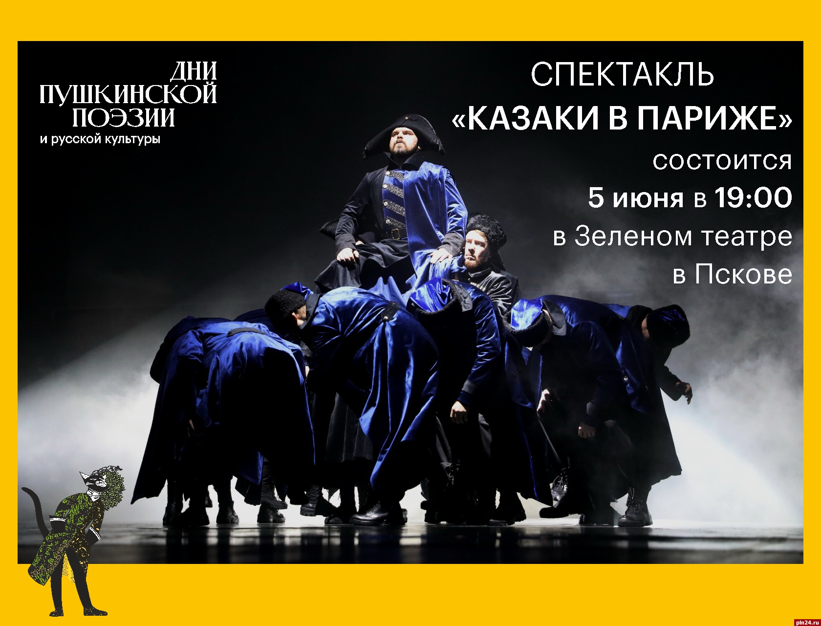 Сегодня, 5 июня, в Зеленом театре в Пскове в рамках Дней Пушкинской поэзии и русской культуры состоится показ вокально-хореографического спектакля «Казаки в Париже». Об этом Псковской Ленте Новостей сообщили в пресс-службе Театрально-концертной дирекции Псковской области.