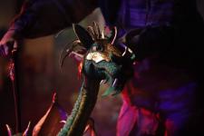 «У купца есть три дочери. Отправляясь за товаром, он спрашивает, что привезти им в подарок. Старшие просят дорогие вещи, а младшая — цветочек аленький. Купец покупает все, кроме цветочка. По дороге назад его корабль попадает в шторм, и он оказывается на каком-то острове. Там его ждет дворец, угощения, новая одежда. В саду он находит аленький цветочек и срывает его. Сейчас же появляется чудище, которое требует взамен цветочка одну из дочерей. Купец возвращается домой. Младшая дочь соглашается отравиться к чудищу», - говорится в анонсе спектакля.