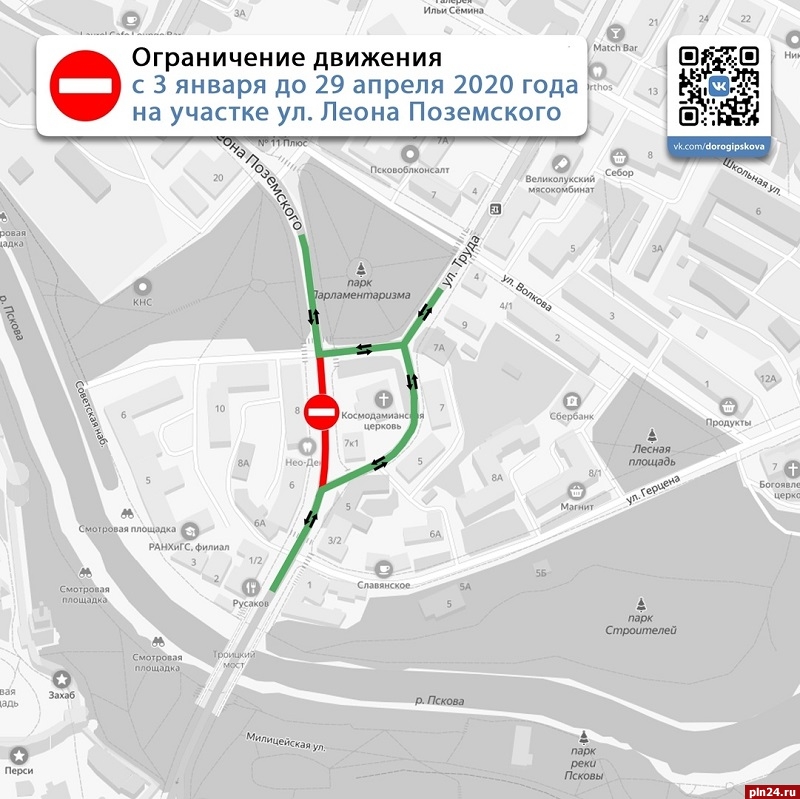 С 3 января и до конца апреля в Пскове закрывается участок улицы Леона Поземского возле храма. Будет организовано двухстороннее движение для объезда, в связи с чем понадобился светофор.