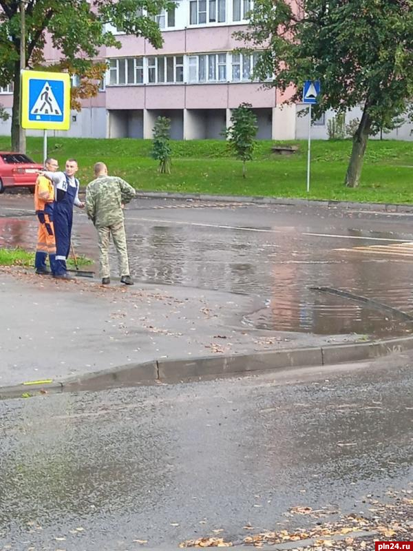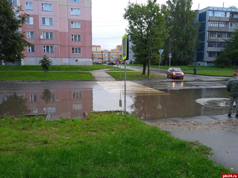 В Пскове утром 13 сентября затопило пешеходный переход на улице Звездной у дома №18. Им пользуются учащиеся лицея №21, сегодня многие переходили дорогу в неположенном месте.