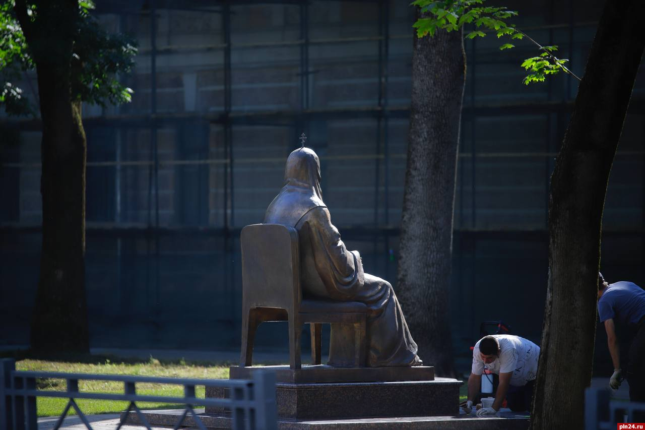 У стен Псковской духовной семинарии на улице Советской поставили памятник святителю Тихону, Патриарху Московскому и всея Руси, передает корреспондент Псковской Ленты Новостей.