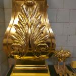 Реставрация иконостаса - это комплекс мероприятий: расчистка, поновление, заделка трещин, шпаклевание, грунтовка, вышкуривание, откраска эмалью, нанесение полимента и, наконец,- золочение. В комплексе работ участвуют специалисты разных направлений. На последнем этапе золоченые детали монтируются на подговленный каркас, затем вставляются иконы.