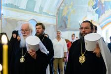 В храме Успения Пресвятой Богородицы перед образом и ковчегом с мощами святителя Тихона Высокопреосвященнейшие Владыки, духовенство и сестры Творожковской обители совершили славление дивному угоднику Божию.