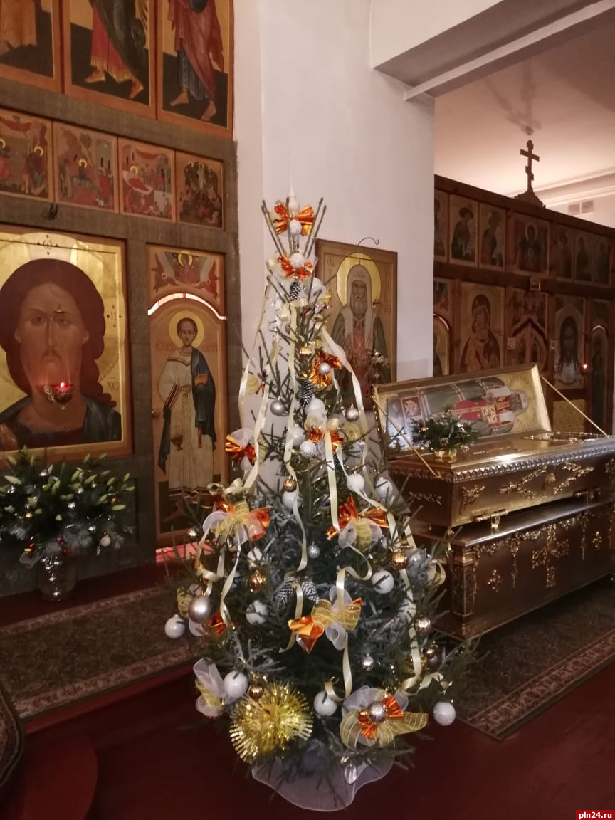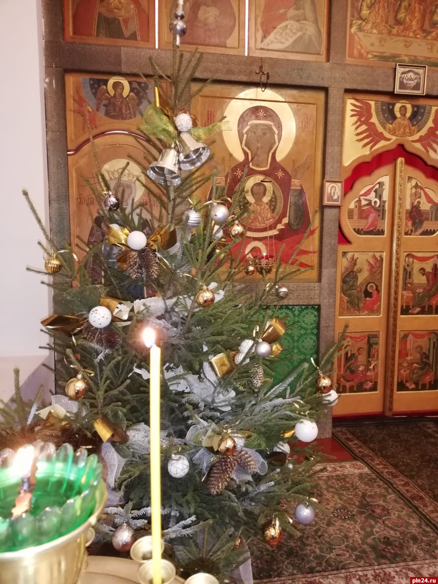 По всему храму витает неповторимый смолистый еловый аромат. И еще чувствуется что-то неуловимое - наверное, это предвкушение доброго чудесного праздника, которого все ждут со дня на день. Пока женщины связывают веточки, которые укроют каркас рождественского вертепа, натирают до блеска подсвечники, создают композиции из лилий, мужчины устанавливают елочки. Дети развешивают на деревьях шарики, шишки и конфеты: сладости - не просто украшение, а самое настоящее угощение для маленьких прихожан псковского храма Успения с Полонища. Здесь так заведено: готовиться к празднику всем вместе - тогда и труд в легкость, и результат в радость!