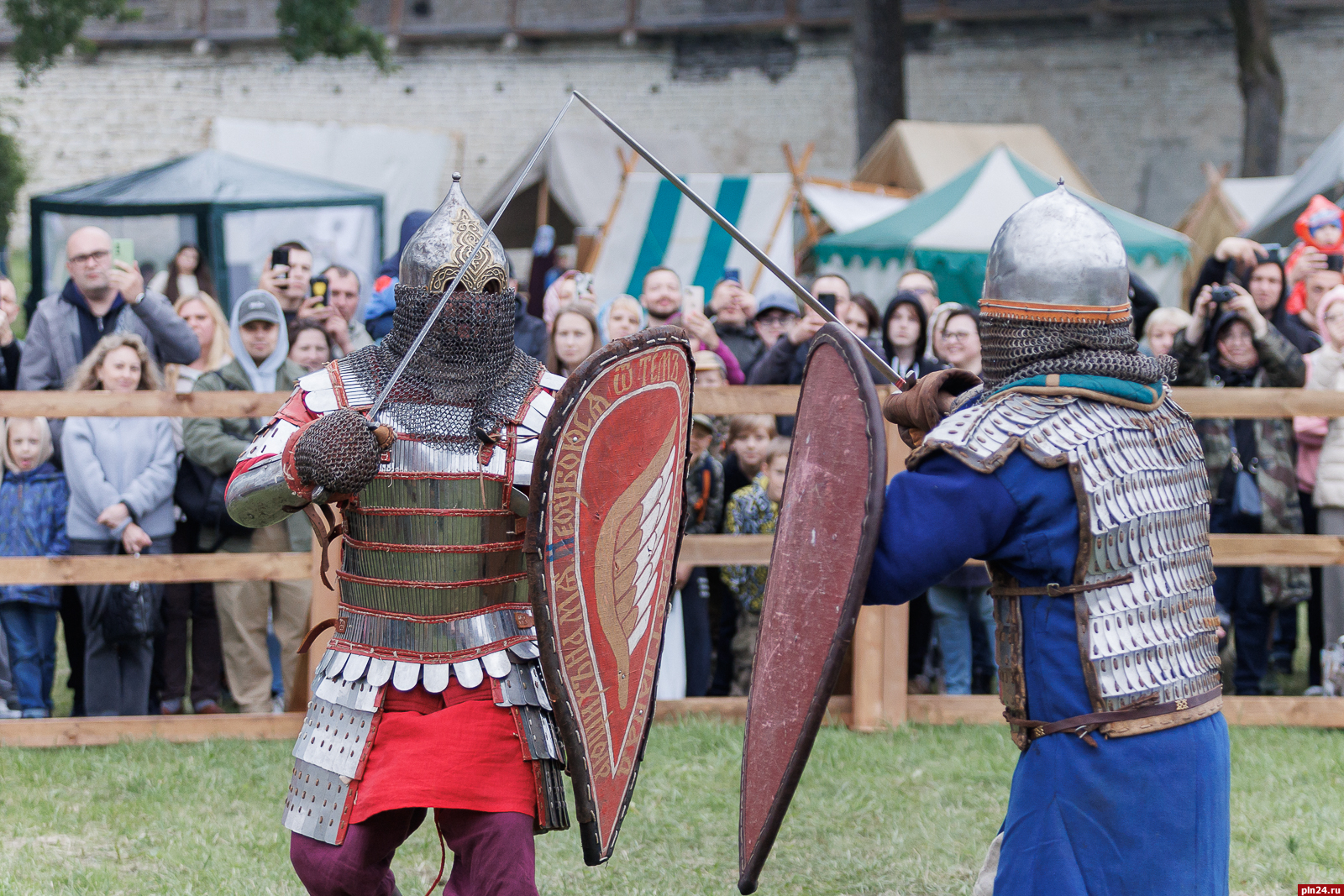В течение дня гости праздника могли попробовать средневековой еды, научиться историческим танцам и послушать выступления музыкальных коллективов. И, конечно, стать свидетелями битвы за «Хрустальный меч князя Довмонта».