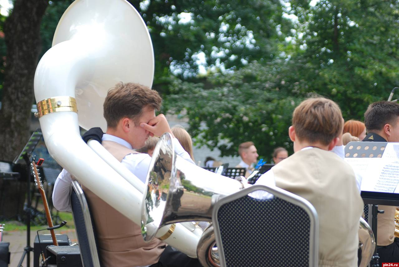 В воскресенье, 10 августа, сразу два детских оркестра исполнили песни о войне и Победе для слушателей программы «Военные оркестры в парках», которая в этом году дебютировала в Пскове. На сцену вышли Детский духовой оркестр имени Александра Роора и Детский духовой оркестр музыкальной школы № 5.