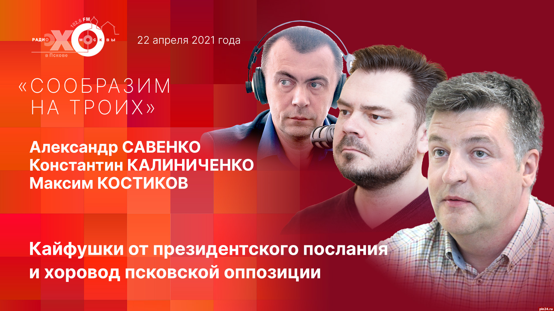 Постоянные соведущие Максим Костиков, Константин Калиниченко и Александр Савенко обсудят с радиослушателями центральные темы этой недели. Во-первых, ежегодное послание президента Владимира Путина, почти целиком посвященное внутренней повестке и мерам поддержки различных категорий граждан. А, во-вторых, несанкционированную акцию несистемной оппозиции — в Пскове несколько десятков собравшихся водили хоровод в сквере на Четырех углах. Оправдало ли послание Владимира Путина ожидания россиян? Как обещанный пакет мер поддержки отразится на общественных настроениях накануне парламентских выборов? Окончательно ли схлопнулся протест?