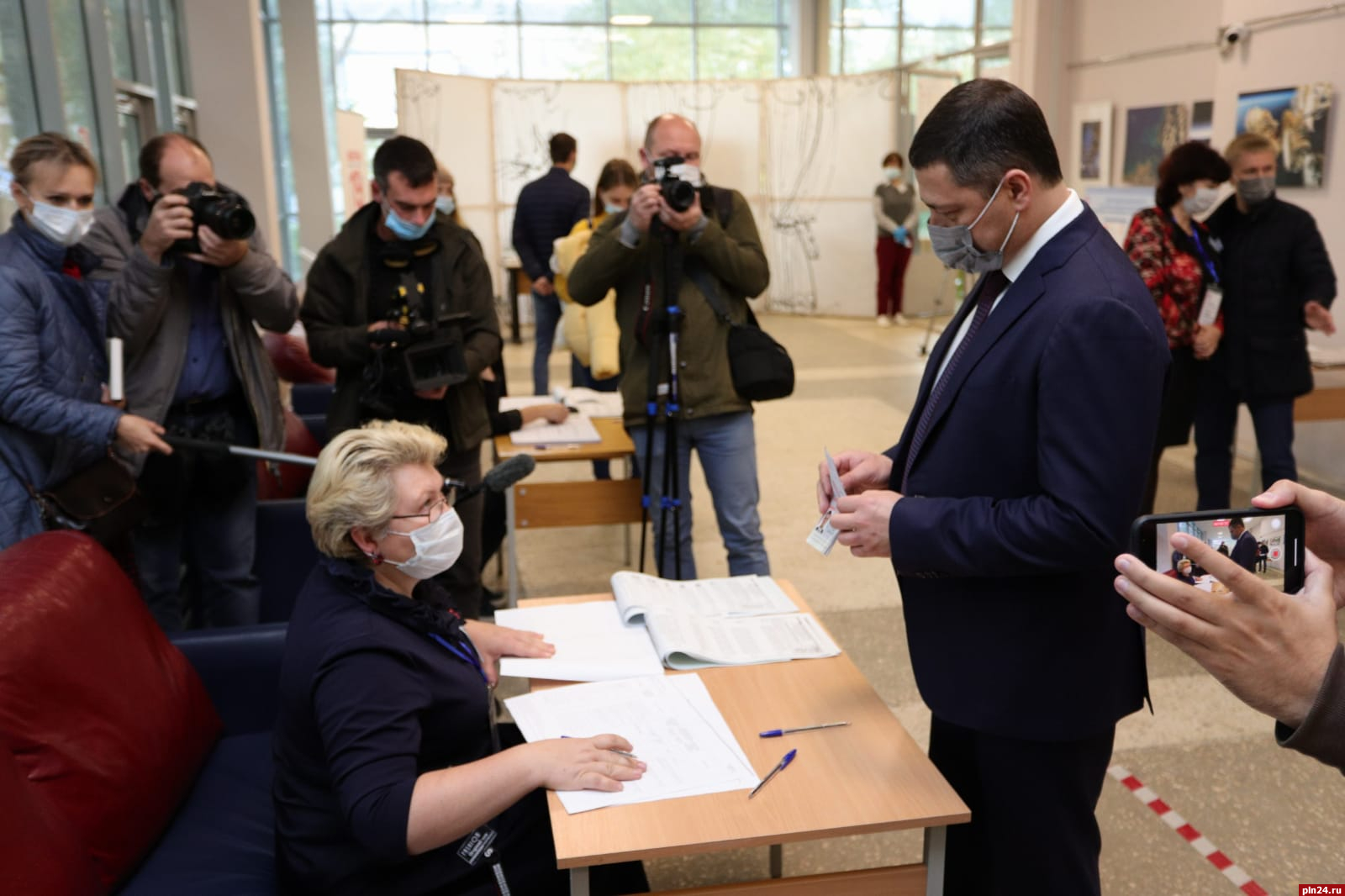 Как передает корреспондент Псковской Ленты Новостей, сегодня, 17 сентября, в первый день голосования, он посетил избирательный участок №72 на улице Набат, 5, где и сделал свой выбор.