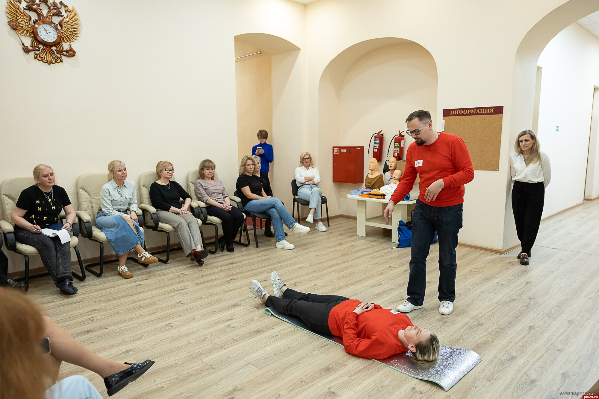 Навыкам оказания первой помощи обучили депутатов и сотрудников аппарата Псковского областного Собрания депутатов. Тренинг провели председатель Псковского регионального отделения Российского Красного Креста Валерия Мишакова и координатор проекта «Первая помощь» Александр Гирилюк. Об этом Псковской Ленте Новостей сообщили в пресс-службе регионального парламента.