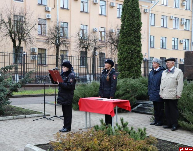 Со словами приветствия к собравшимся обратился заместитель начальника УМВД России по Псковской области полковник полиции Сергей Ащеулов. Затем начальник ЦПП УМВД полковник полиции Михаил Харитонов провел торжественный ритуал принятии присяги.