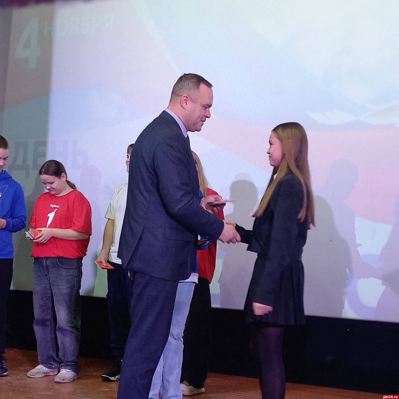 День народного единства в Острове встретили торжественным мероприятием, в ходе которого юным островичам вручили паспорта граждан Российской Федерации. Об этом сообщил глава Островского муниципального округа Дмитрий Быстров в своем Telegram-канале.