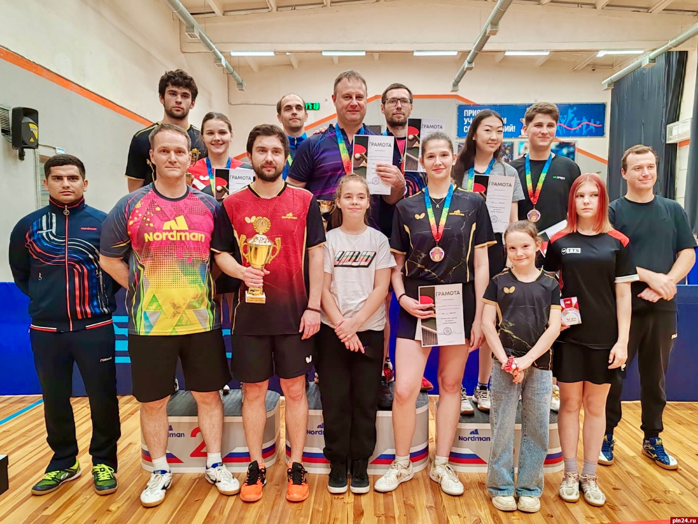 В эти выходные состоялся открытый турнир по настольному теннису «Кубок Нордман», участие в соревнованиях приняли почти 60 спортсменов из Пскова, разных районов Псковской области, а также из Санкт-Петербурга, Карелии, Мурманской, Ленинградской и Тверской областей и Северной Осетии. Об этом пишет руководитель спортклуба по настольному теннису Nordman, вице-спикер Псковского областного Собрания Юрий Сорокин в соцсети ВКонтакте.